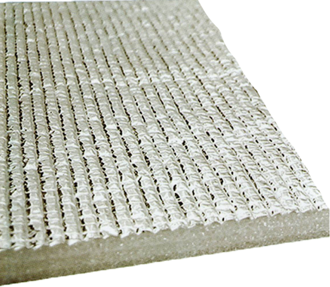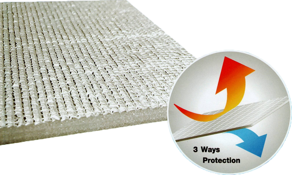 ฉนวนความร้อนประสิทธิภาพสูง ผ่านกระบวนการ ผลิตด้วยเทคโนโลยีทันสมัย ในการประสาน Metalized Film เข้ากับฉนวนโพลีเอทธีลีนโฟม (Non-Crosslinked Polyethylene Foam) ที่มีค่าการนําความร้อนต่ํา เพียง 0.029 W/mk. (ASTM c-177) ด้วยระบบ Dry Laminate เคลือบผิวด้วยพลาสติกฟิล์ม P.E.L. (Polyethylene Terephthalate) ทําให้ผิวของฉนวน มีความคงทนต่อรอยขีดข่วน อีกทั้ง ยังทนต่อสภาพอากาศ และความชื้นได้เป็นอย่างดี